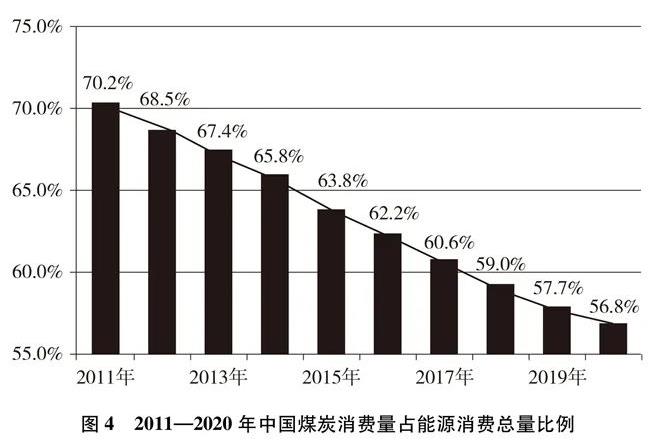 能源消費結構向清潔低碳加速轉化。為應對化石能源燃燒所帶來的環境污染和氣候變化問題,中國嚴控煤炭消費,煤炭消費占比持續明顯下降。2020年中國能源消費總量控制在50億噸標準煤以內,煤炭占能源消費總量比重由2005年的72.4%下降至2020年的56.8%。中國超額完成“十三五”煤炭去產能、淘汰煤電落后產能目標任務,累計淘汰煤電落后產能4500萬千瓦以上。截至2020年底,中國北方地區冬季清潔取暖率已提升到60%以上,京津冀及周邊地區、汾渭平原累計完成散煤替代2500萬戶左右,削減散煤約5000萬噸,據測算,相當于少排放二氧化碳約9200萬噸。
